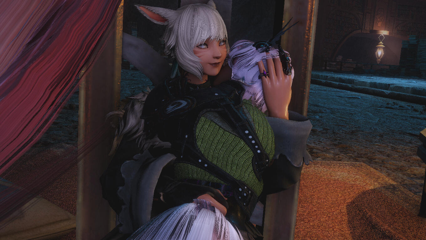 Aldra stirred faintly against Y’shtola’s shoulder, her breath shallow but uneven, as though some part of her soul sensed the battle being waged in silence. Her body was heavy, weighted by the lingering threads of the spell, but her heart was not entirely subdued. Somewhere between dream and waking, she felt the pull of the aether, tugging at her thoughts like unseen hands reshaping her.Yet beneath that, deeper still, was the warmth of Y’shtola herself, the scent of her robes, the steadiness of her heartbeat, the arms that held her with care. It was not only the spell that bound her here. It was her.Her lips parted weakly, a sound barely more than a breath. “Y’shtola… don’t leave me…” The words were not forced, not compelled by magic, but fragile and trembling, torn from the deepest place of longing.Y’shtola froze. Her hand hovered, fingers still glowing faintly with the remnants of the spell, but the confession cracked something inside her chest. The incantation she had so carefully woven seemed almost less real than the faint weight of those words.Aldra shifted, her eyelids fluttering but never opening. “I feel you pulling me… changing me… but… I don’t want to lose you. I love you. Even without this…” Her voice faded into a whisper, but the truth of it lingered.Y’shtola’s breath caught, her control faltering. Could Aldra sense it all along? The spell, the obsession, the danger wrapped in affection? And still, she spoke of love. Genuine, unshaped.In her exhaustion, Aldra’s body surrendered to rest again, her tail twitching once before growing still. But Y’shtola, heart unsteady, was left with the question burning brighter than ever: If she truly loves me as I am, do I need the spell at all?