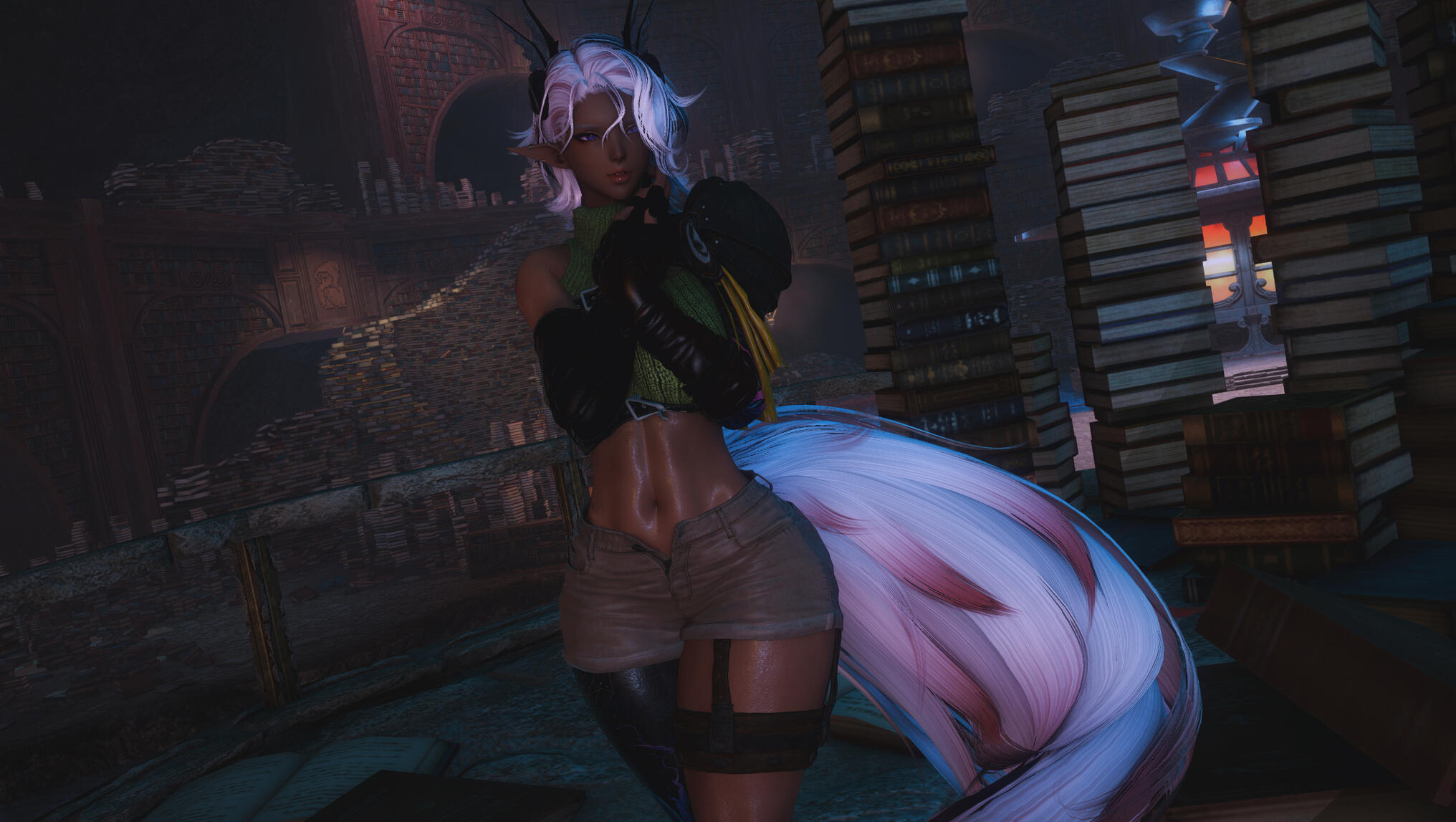 Y’shtola’s arms wrapped gently around Aldra as they departed the Relict, her aether weaving a cloak that obscured their passage from prying eyes. Aldra leaned into her, weary but tender, her mismatched gaze soft as though the world had narrowed to the woman at her side.Idyllshire welcomed them with the hum of voices, the clang of hammers, and the laughter of children darting between half-ruined walls. To others, the pair appeared as two travelers taking respite; to Y’shtola, it was the perfect place to let Aldra breathe, to show her glimpses of a life not defined by fear.They strolled along the cobbled paths, Aldra’s fox-dragon tail swaying faintly, her hand brushing Y’shtola’s arm as if seeking quiet reassurance. At times her eyes clouded, confusion flickering in their depths as the pull of the spell warred with the echoes of her own heart. Yet always she settled again against Y’shtola’s presence, her voice soft and her smiles genuine enough to soothe Y’shtola’s doubts.The sorceress hid her tears well, but they burned in her chest. She longed to believe that this devotion was real, that Aldra’s whispered confessions were not just the fruit of enchantment, but the truth that had always lain dormant. Still, she did not release the spell’s grip. Not yet. Not when Alisaie lingered somewhere beyond the horizon, sharp and relentless, searching.Unseen by them, Alisaie sat hunched in a candlelit room half a world away, notes and records scattered before her. She studied fragments of draconian lore, old Sharlayan treatises on binding magic, and obscure texts on obsessions that had become curses. Her mind wrestled with the same question that haunted her heart: was Aldra’s love her own, or had Y’shtola twisted it?Until she could answer that, Alisaie could not make her next move. The risk of confronting Aldra too soon, of shattering her spirit further, was too great. So she searched, quietly, doggedly, holding her course in obscurity, even as Y’shtola guided Aldra deeper into a world where love and spellwork blurred together until neither could be separated.